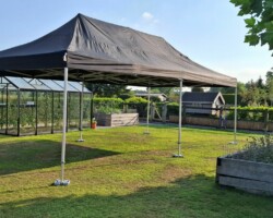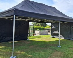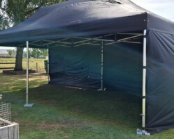 Professionele tent voor al uw feestjes. Volledig afsluitbaar. Afmetingen: 8 x 4 meter (plaats voor ongeveer 35 mensen). Tent wordt geplaatst en terug opgehaald. Vooraf te bepalen aantal zijkanten. Ter plaatse dienen minstens 3 helpers beschikbaar te zijn.